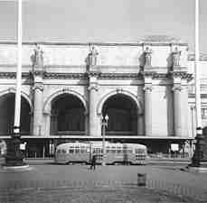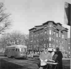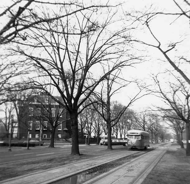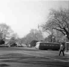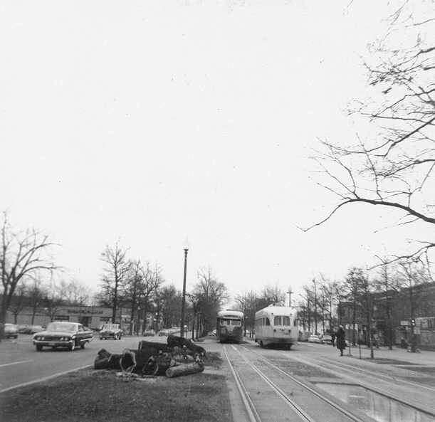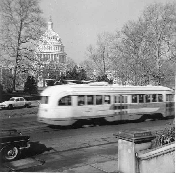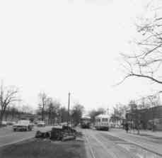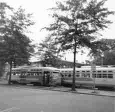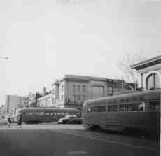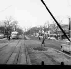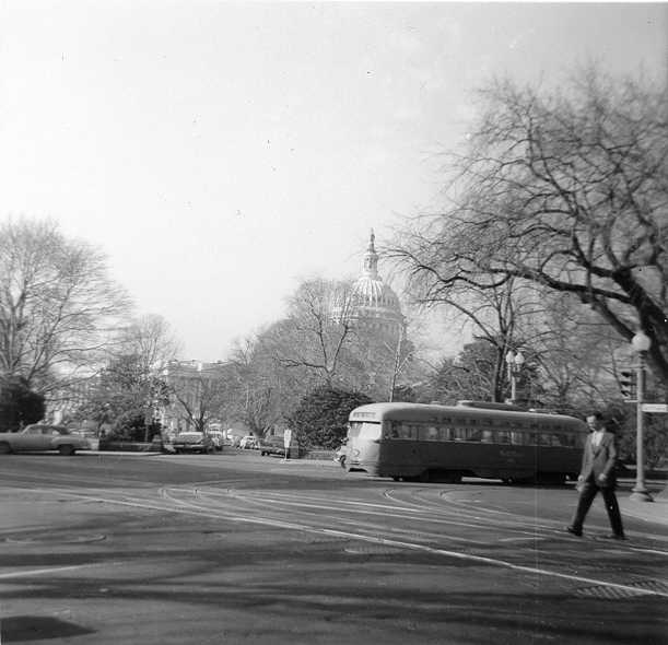 These pictures are a wonderful change from the normal fan pictures, which were three-quarter views of the streetcars. As you can see, these pictures are pretty useless for modeling the streetcars. But they are facsinating as a document of a slice of Washington in 1962, documenting the whole trolley line, not just a few streetcars.